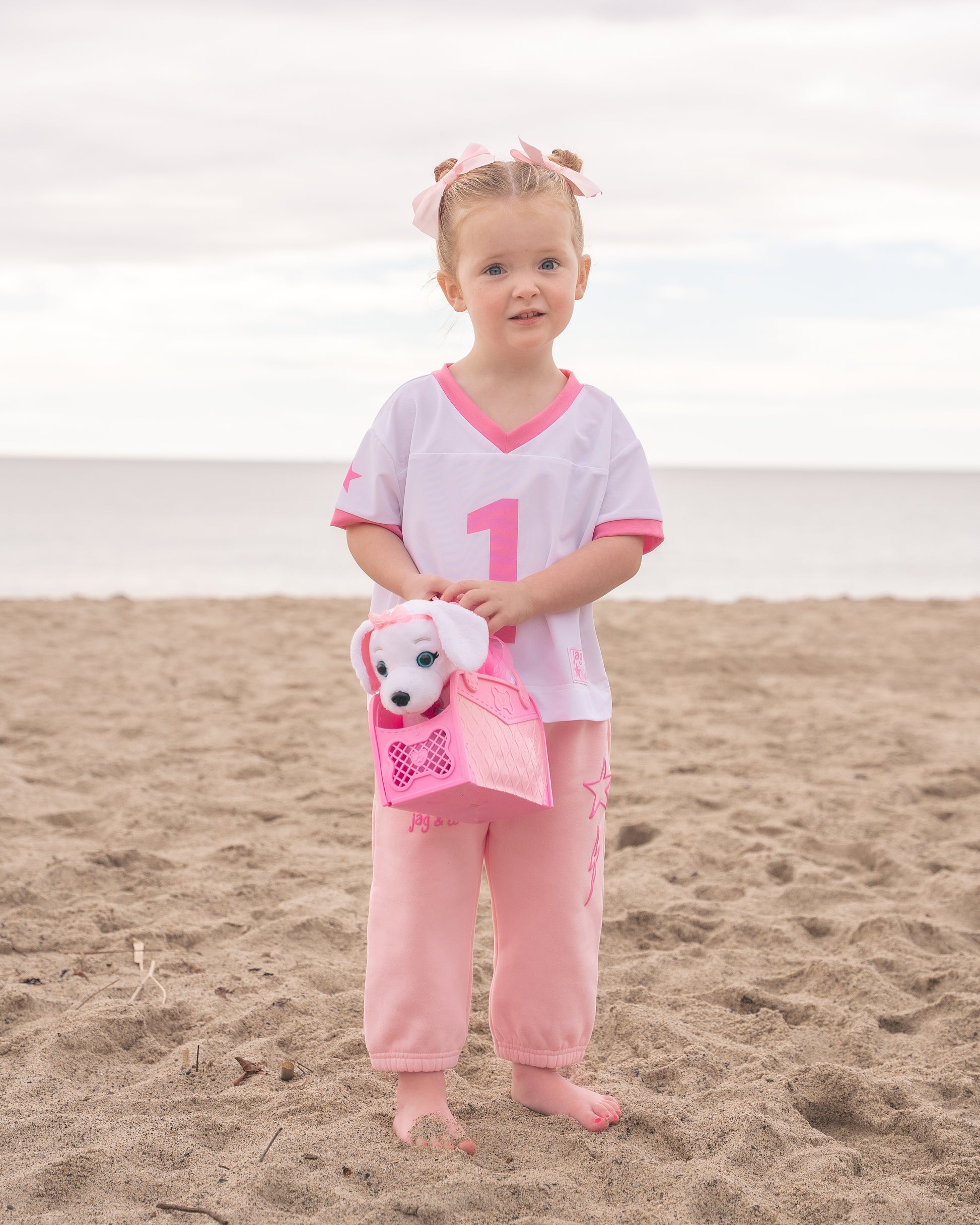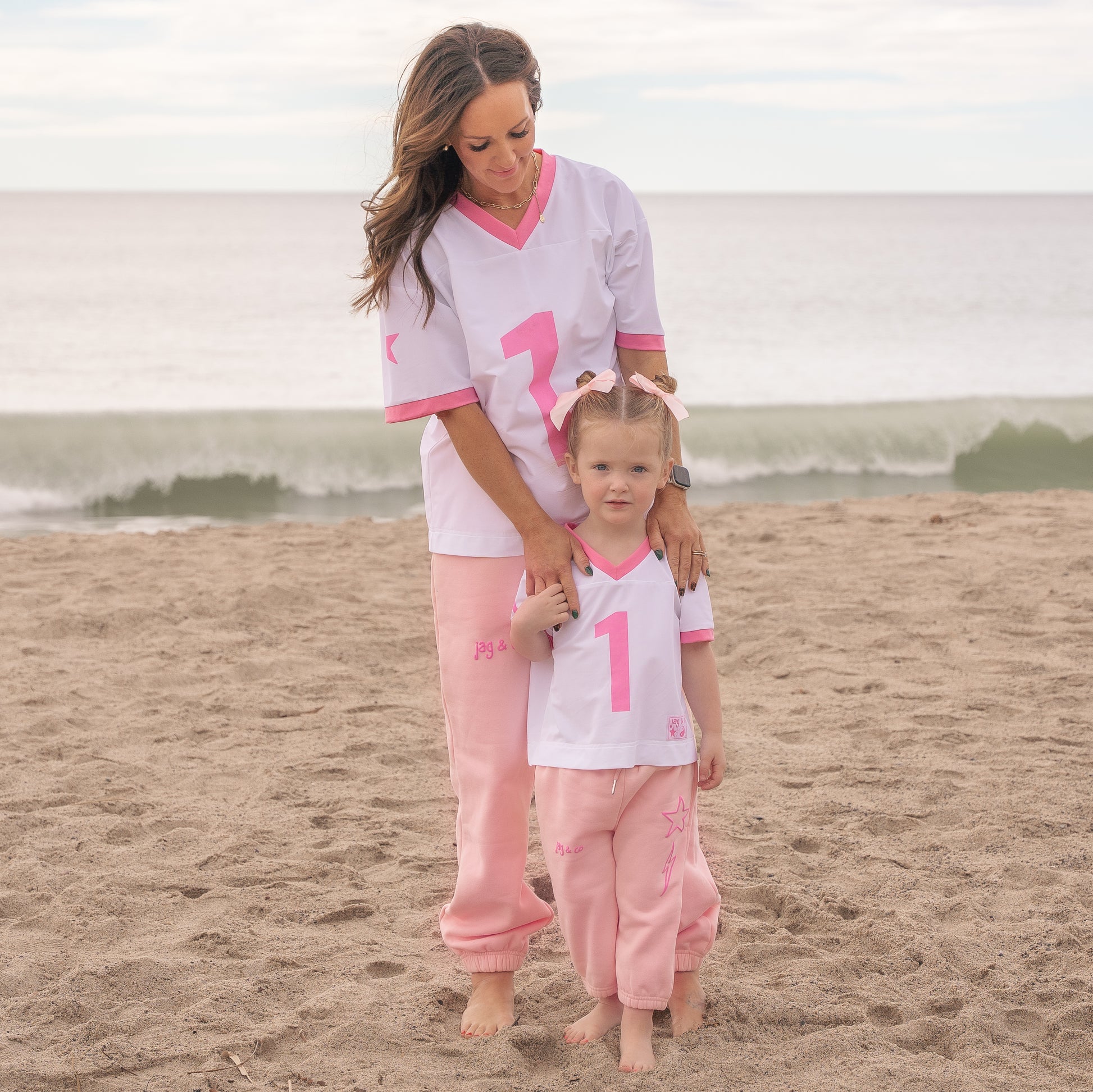 The “You’re a Star” Jersey brings all the playful charm of the mom version—soft fabric, bright pink details, and a tiny #1 in a comfy oversized fit made just for your mini.